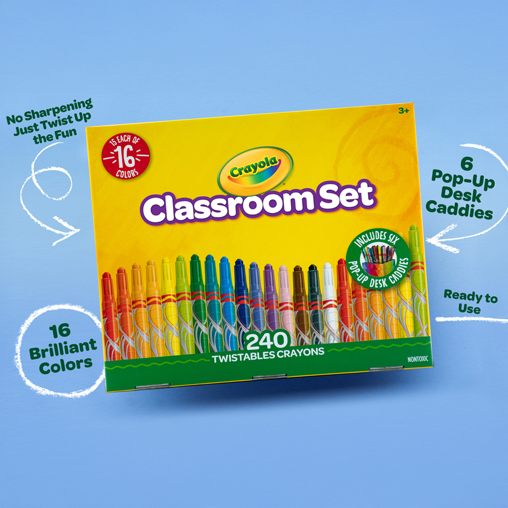 The Crayola Twistable Crayons Classroom Set of 240 is a great option for schools and classrooms, offering a large quantity of crayons that are easy to use and mess-free.