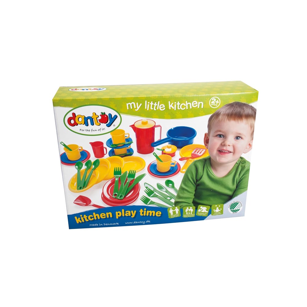 Dantoys Classic Kitchen Play Set is a complete 42-piece collection that opens the door to hours of creative kitchen play. This colorful set includes everything small chefs need - from plates and cups to cutlery and pots in inviting colors like red, yellow, and blue. Each piece is manufactured in Denmark under the highest quality standards and is Swan Labeled, which guarantees both environmental friendliness and safety for children.