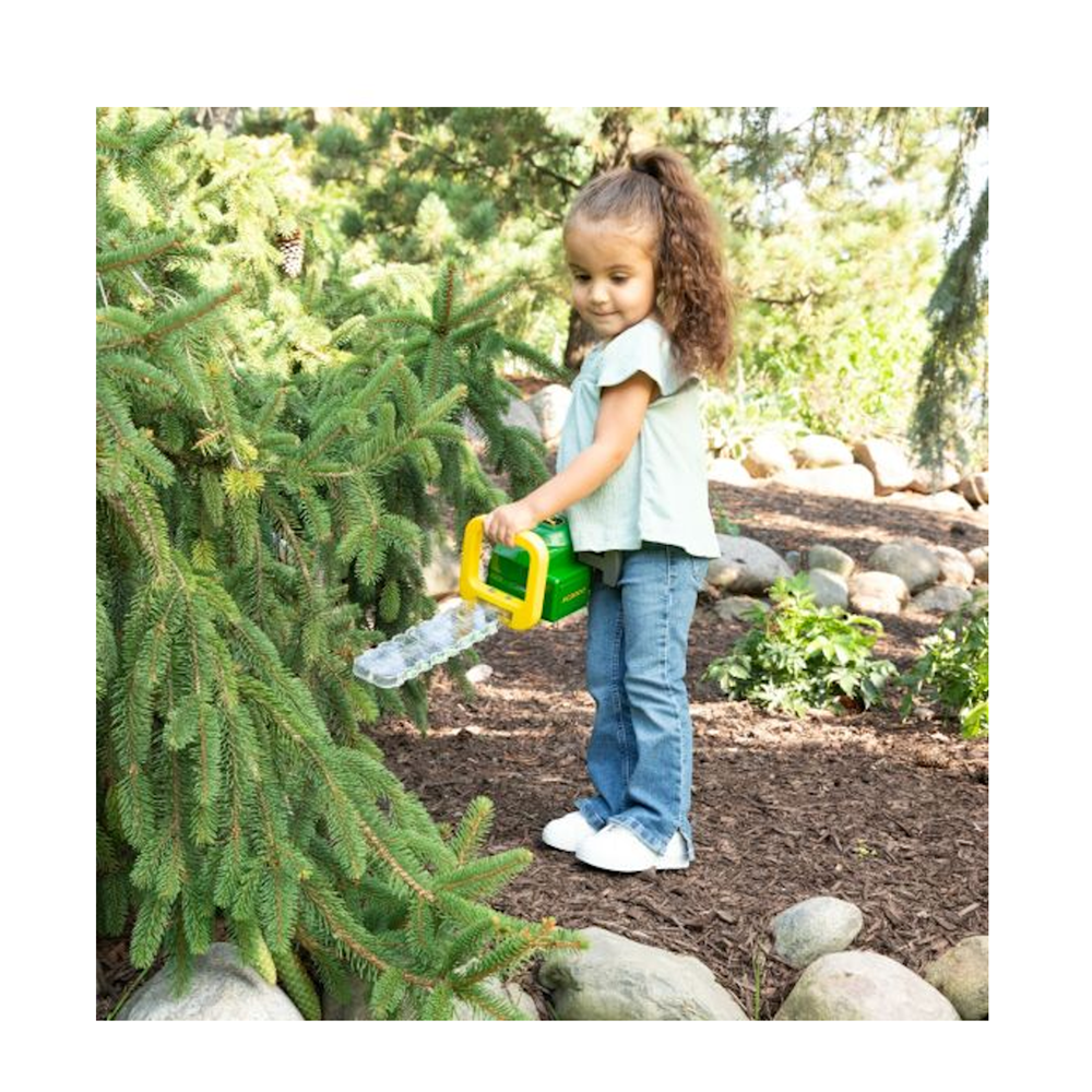 Pull the cord to hear start-up sounds. Unique and realistic hedge trimmer that is brightly coloured in John Deere green and yellow. Tough plastic construction with realistic play features. Safe handling for hours of outdoor fun!