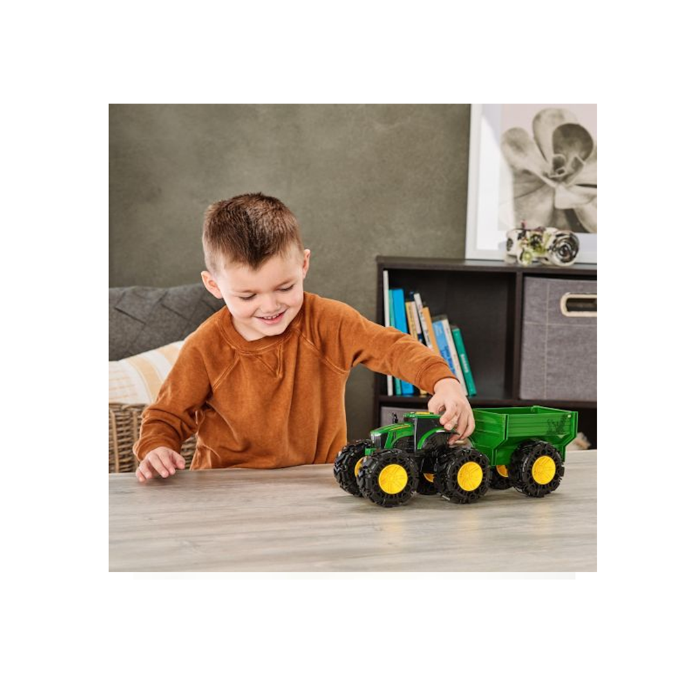 This Monster Treads tractor with wagon features an updated tire tread design along with lights and sounds. Additionally, the removable wagon features an opening rear door. Measuring over 38cm long (with the wagon attached), this Monster Treads tractor set is perfect for the younger John Deere fan.