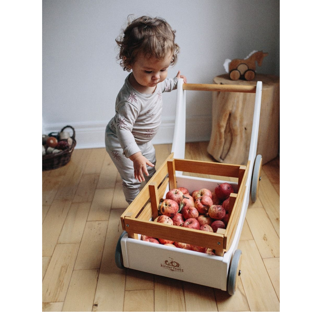 Kids have have a blast putting their toys inside and taking them for a stroll. Whether indoors or outdoors, the Kinderfeets Cargo Walker is the perfect way to introduce little ones to walking. Before you know it, they’ll be running!