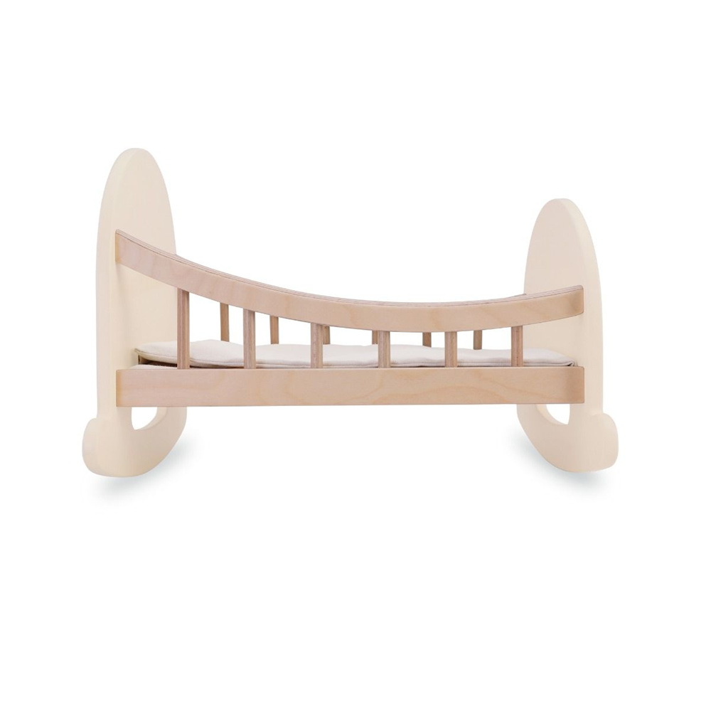 Crafted from sustainable birch plywood, solid beech, and engineered wood, the crib is sturdy, durable, and made to last. The easy-to-rock design makes it simple for little ones to soothe their dolls to sleep, while the included 100% natural cotton bedding (mattress and pillow) ensures dolls and stuffed friends are comfy.