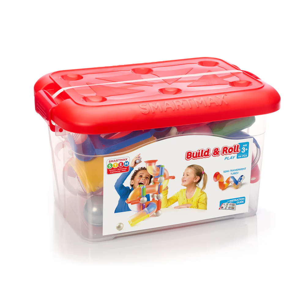 Use this new SMARTMAX STEM-focused magnetic construction set to create amazing structures! SmartMax Build & Roll includes 44 pieces that enable kids to make all kinds of crazy structures and let the balls roll...and then pack everything in a sturdy storage case! Includes 15 bars, 7 curved tubes, 2 straight tubes, 1 funnel, 12 metal balls, 7 panels with holes and a building guide. SmartMax enables young children to explore magnetism safely, with strong, oversize pieces that are specifically designed for handling by young kids. SmartMax products are safe and durable, made from the highest quality materials. Our magnets are incredibly strong, able to carry up to 60 times their own weight!