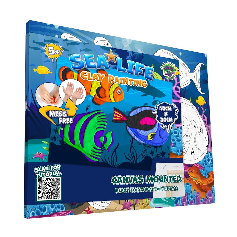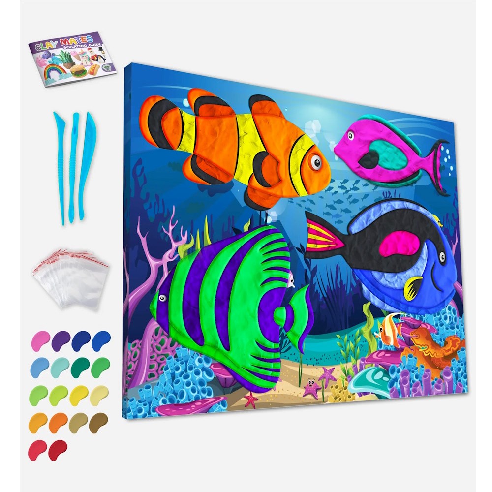 What’s Included: Mess-Free Sea Life Design Clay Painting Kit with air dry light clay – Fun, Hands-On Canvas Art Activity for kids and adults.