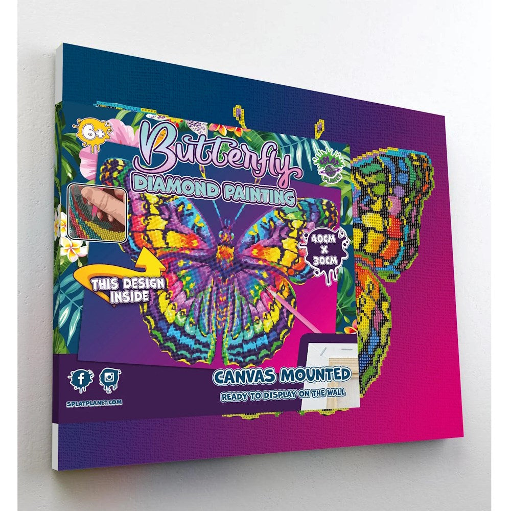 Our 30cm x 40cm Butterfly framed Diamond Painting kit is the perfect rainy day activity. It is pre-stretched on a frame so you don't need to fiddle around unrolling it and flattening it or finding somewhere to paint it. It is pre-mounted and ready to paint straight away.