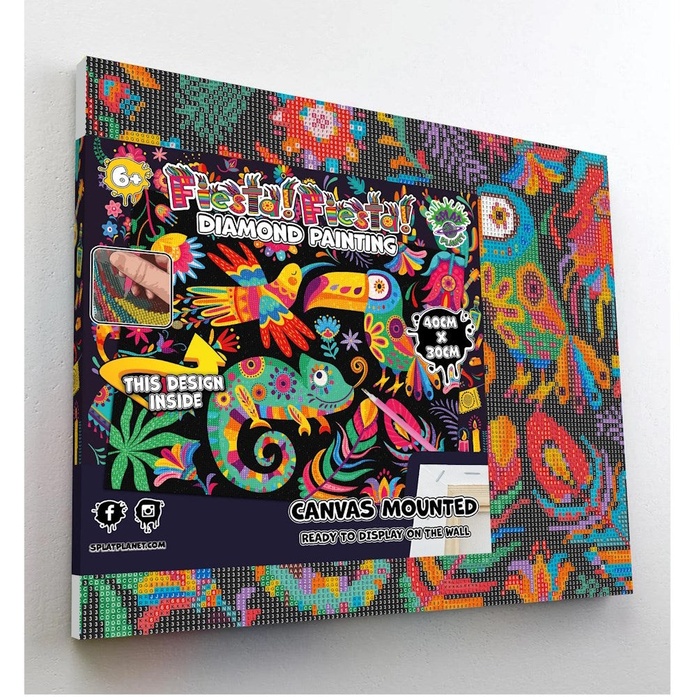 Our 30cm x 40cm Fiesta Fiesta Mexican themed framed Diamond Painting kit is the perfect rainy day activity. It is pre-stretched on a frame so you don't need to fiddle around unrolling it and flattening it or finding somewhere to paint it. It is pre-mounted and ready to paint straight away.ย