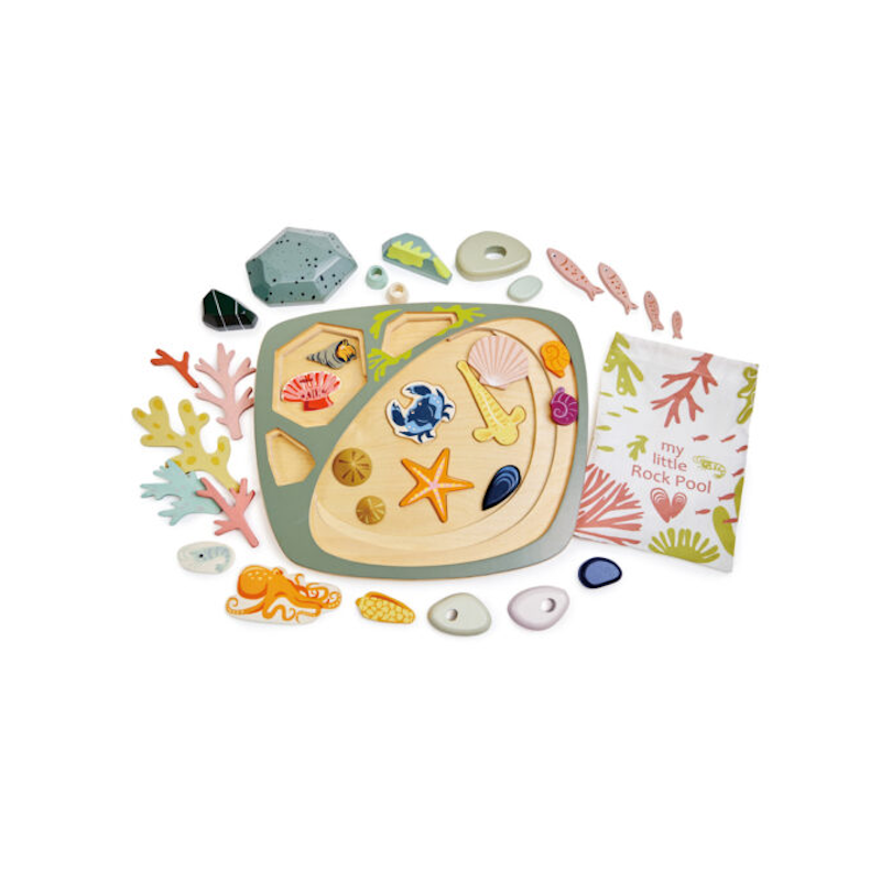Dive into the wonders of the sea with this high-quality wooden rock pool set, designed to inspire open-ended exploration and learning about the natural world. Children can lift the three large rocks to reveal hiding spots for small fish and shrimp, practice shape sorting with the base layer shapes, or create a 3D seaweed forest using the rocks with holes.
