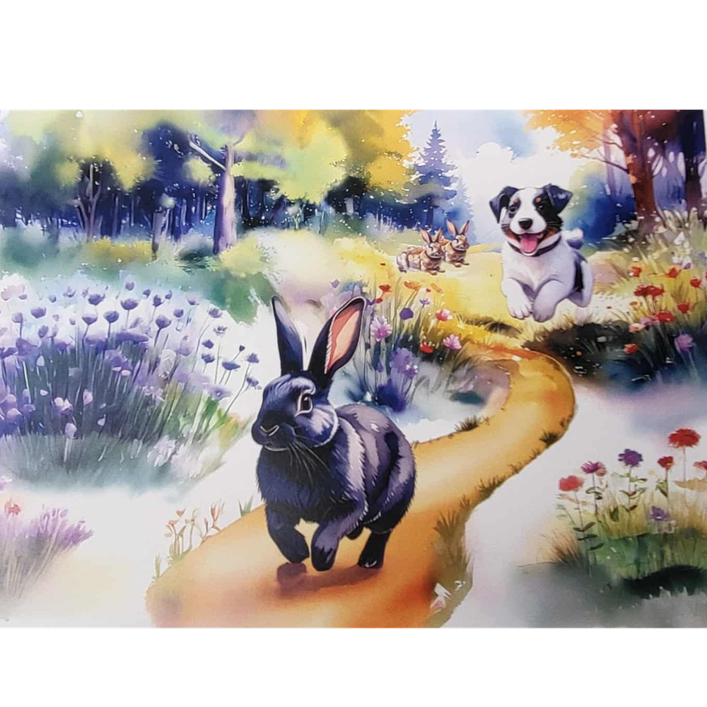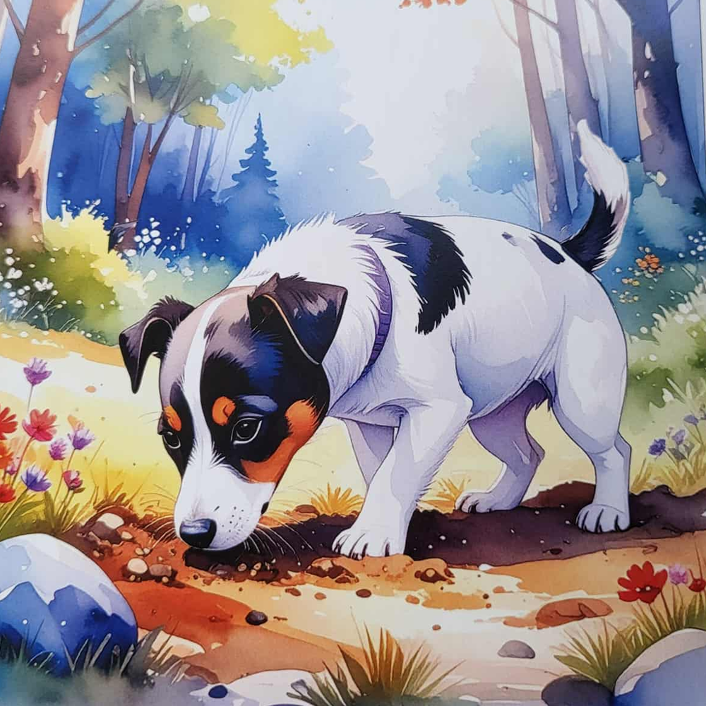 This beautifully illustrated book is the story of a Black Bunny and his friends who live in a burrow under a large tree, and his escape from Harry the cheeky Jack Russell Terrier!